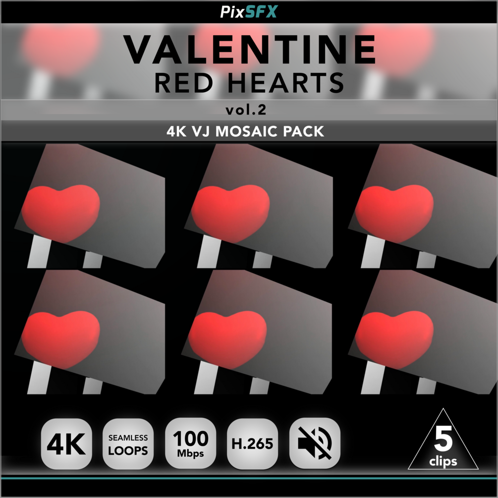 Title: PixSFX - Valentine Red Heart VJ Mosaic - Pack 02